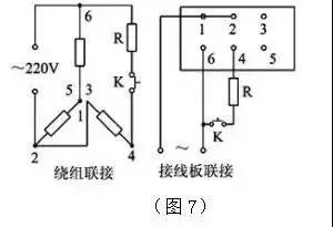 圖3接線轉(zhuǎn)矩太低,若增大力矩可將移相電容串入二相繞組連在一起的線圈中,用此繞組為起動(dòng)繞組,單只線圈直接接在220V電源上,見(jiàn)圖4。圖3、圖4如果需要改變轉(zhuǎn)軸轉(zhuǎn)動(dòng)方向,可將起動(dòng)繞組或運(yùn)轉(zhuǎn)繞組的頭尾換一下就可。